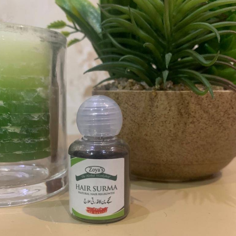 Zoya’s Hair Surma® is a combination of 14 essential herbs and seeds reduced to powder by oxidation. It helps relieve baldness by stimulating natural hair regrowth.